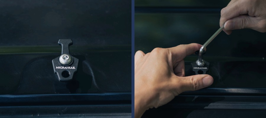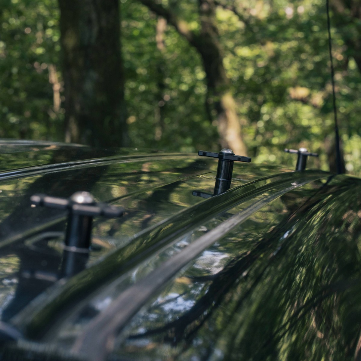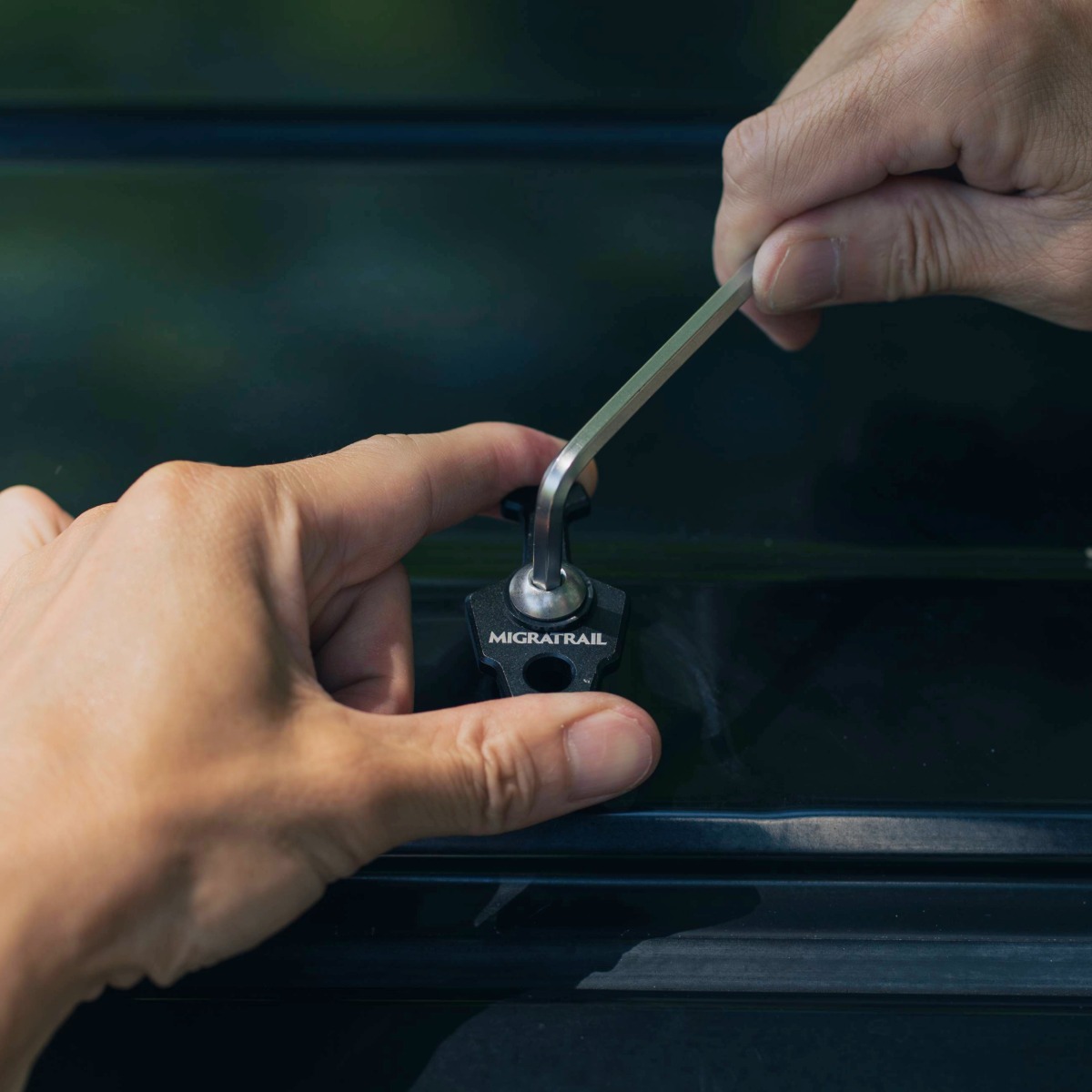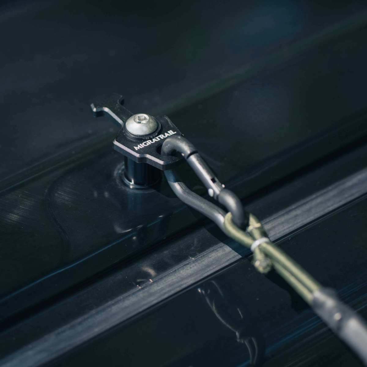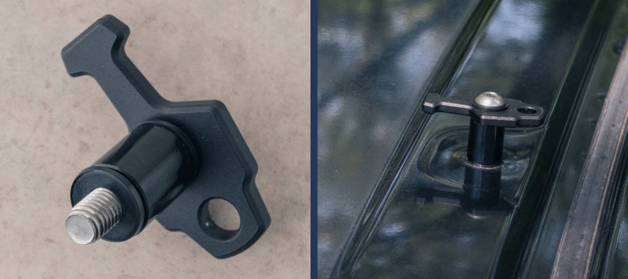 NV200バネットにタープを簡単・確実に取付けられる、機能的なタープ/カーサイドテント用カージョイントフック。 カーサイドでキャンプを楽しみたい人へ、スムーズなオーニング設置をサポート。