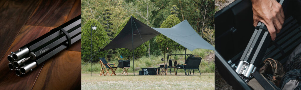 【収納時の悩みをスマートに解決! 賢い形状のタープポール。】超軽量ペグでアウトドア界に参入、吊り下げ収納ギアも好評価な「MIGRATRAIL(ミグラトレイル)」が、今度はポールをリリース。これがポール収納時の悩みを根本的に解決する、賢いギアとなっている。