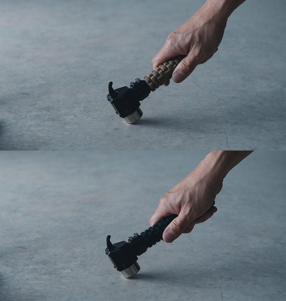 真鍮より変形が少なく、強靭で錆びないステンレスを採用し、ヘッドの交換頻度を抑える。ヘッドは付属の工具一つで交換が可。