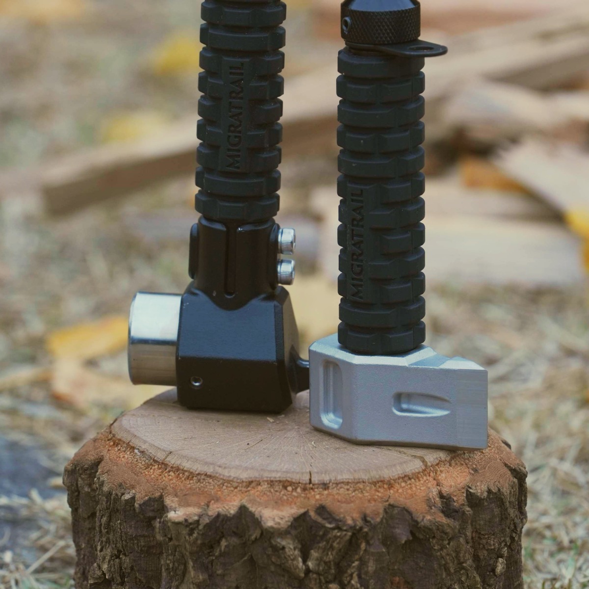 ヘッドを下にし自立させることができ、キャンプサイトでの紛失を防ぐ。