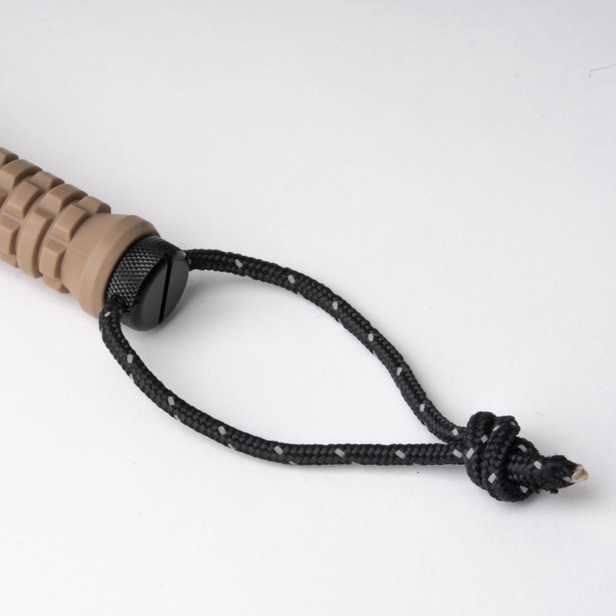 好みのパラコードをエンドの穴に通し、ハンガーフックに掛けるループにしたり使用時の抜け防止のループとして使用。