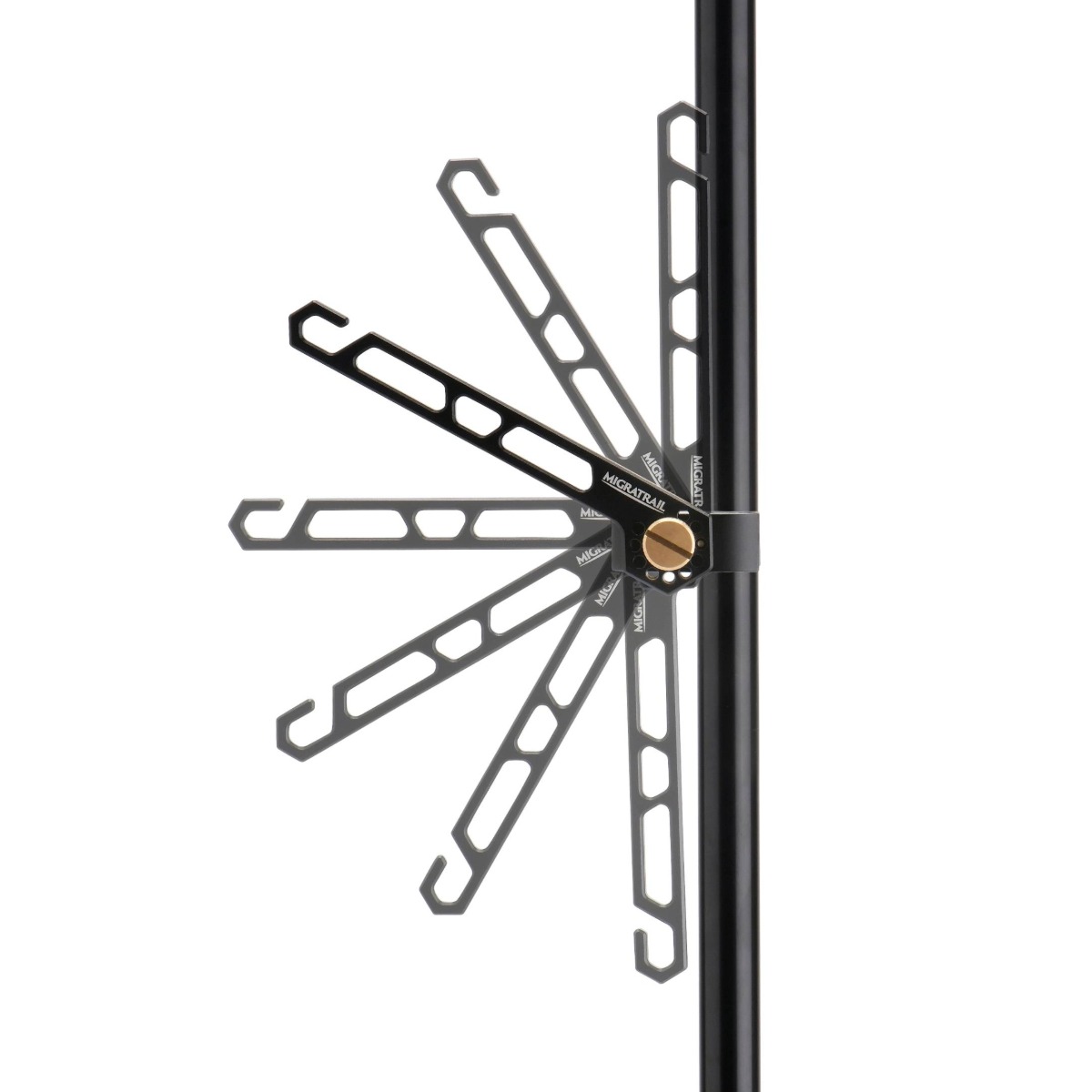 タープのサブポールや、小型/大型のランタンスタンド、トレッキングポール等の丸型パイプへ好みのポジションに設置可能。