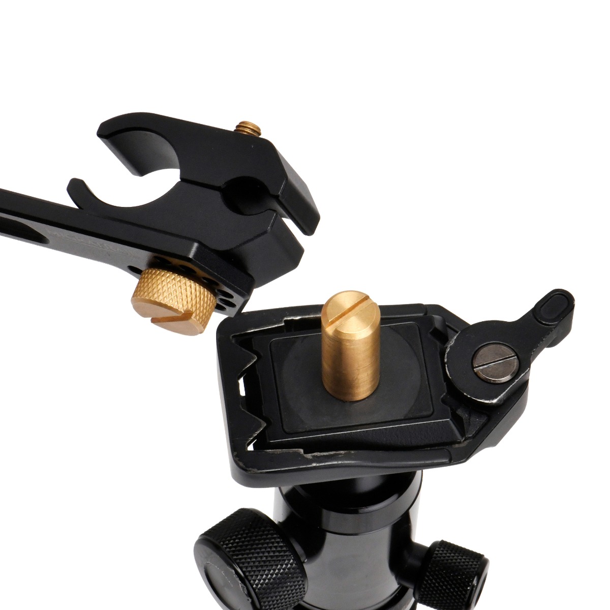付属の真鍮製アダプターを利用し、カメラ三脚に取付け可能。