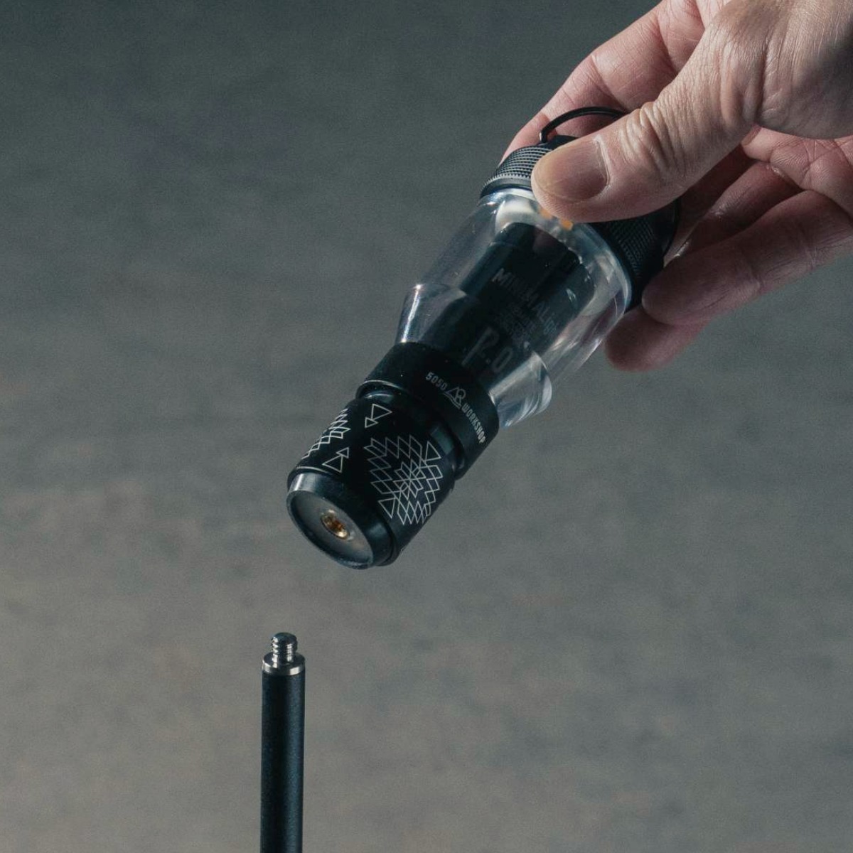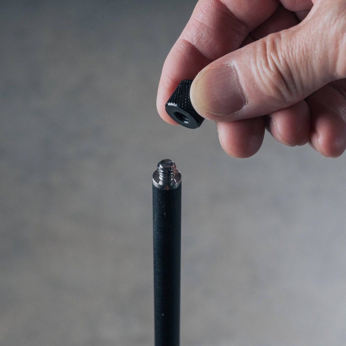 ポールのトップキャップを取外すと、カメラネジになっており、直接LEDランタンを取付けでき、シンプルに美しく飾ることができる。注意:トップキャップは紛失しないようにご注意ください。