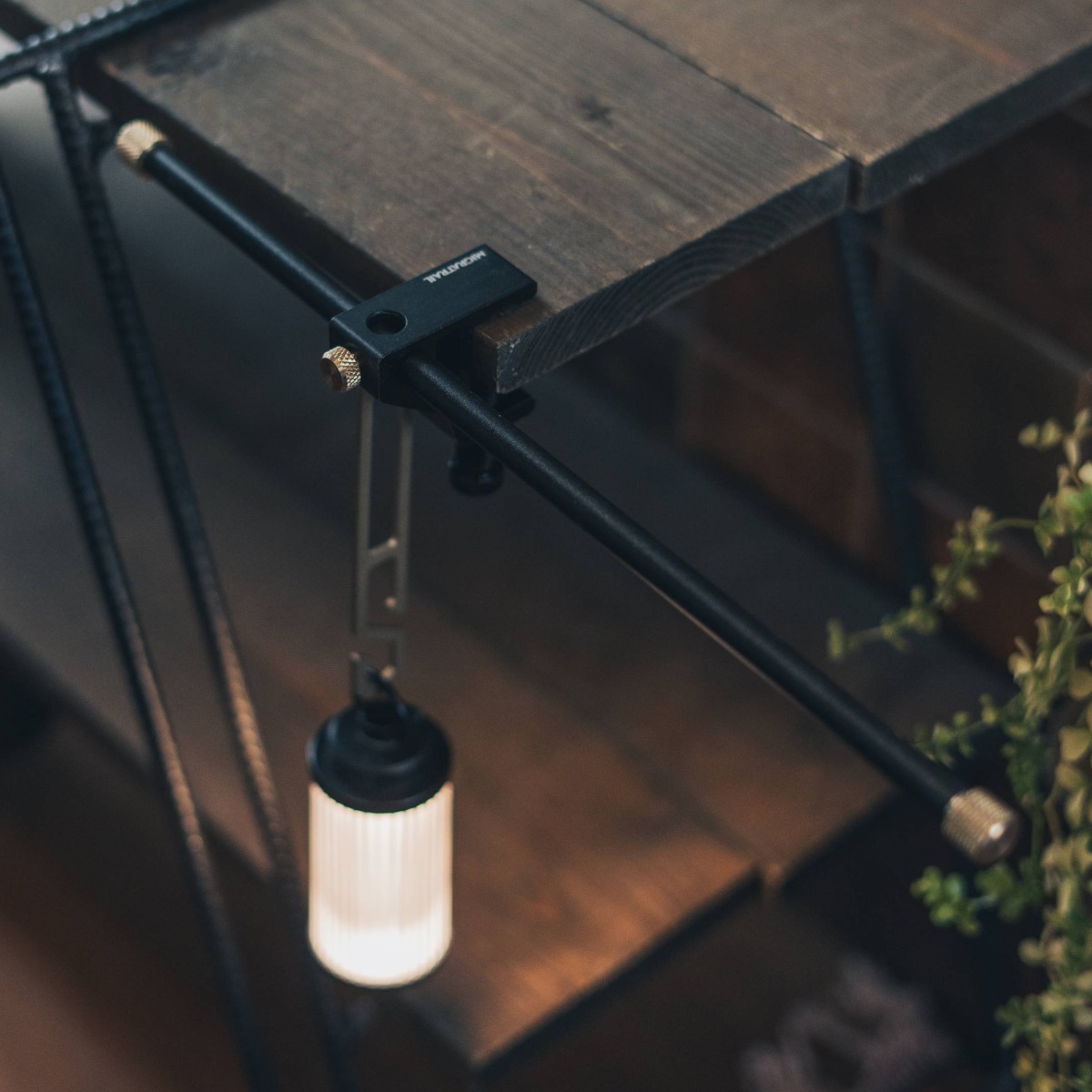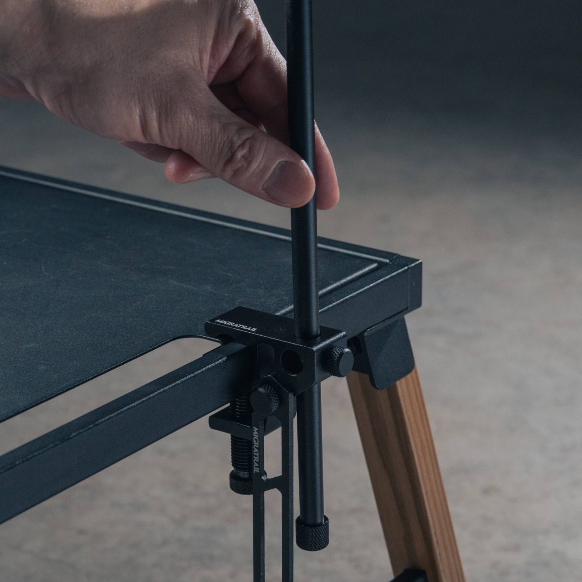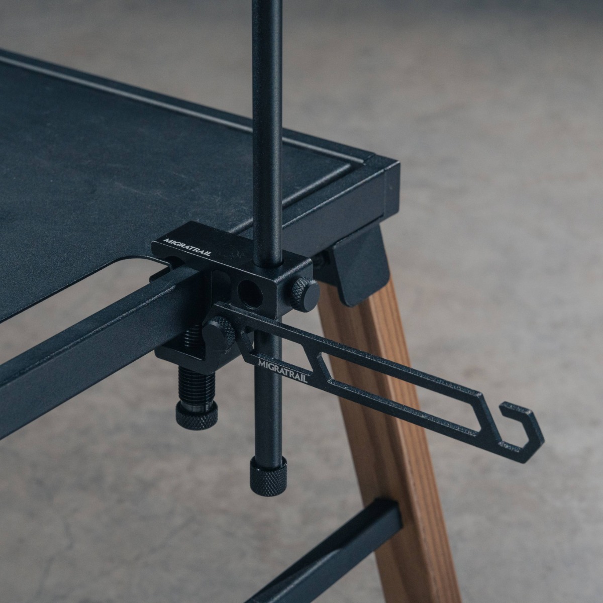 アウトドアでもリビングでも、どこでもフィットするテーブルクランプ型ランタンハンガー。 ハンガーを縦にも横にも向きを変えて使用できる構造を採用。 さらに、収納性や組立性が高く、材質からデザインまでこだわりの構成。 ランタンやシェラカップはもちろん、ミグラトレイルのキャンプギアシリーズとの組合せで多目的に使えるマルチギア。【意匠登録出願中】