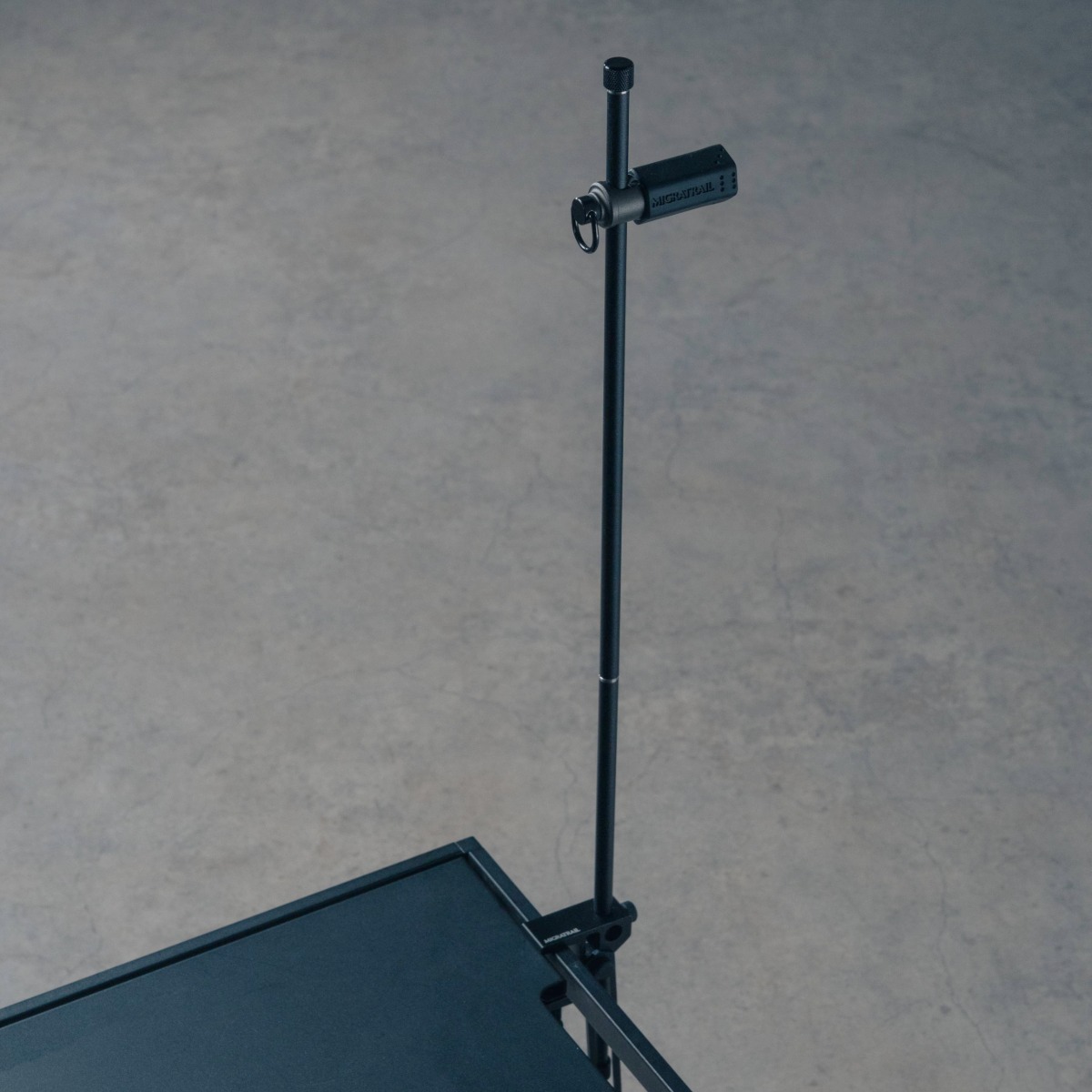 付属のハンガーは3カ所に取付け可能。クランプ部位、ポール中間、先端と好みの部位に取付けが可能でアレンジが多彩。注意:クランプ部位での利用は軽量な物だけ掛けることができます。