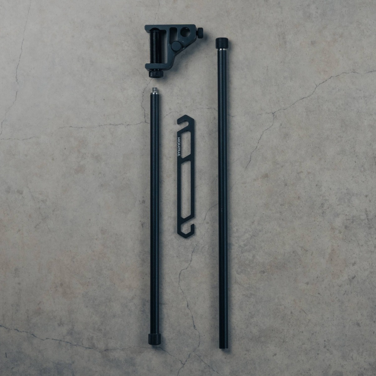 ポール一本だけ利用すればソロ向き超小型ハンガーになり、ポール2本のみを利用し、好みのカメラスタンドにポールを取付ければ大型ランタンハンガーになる。