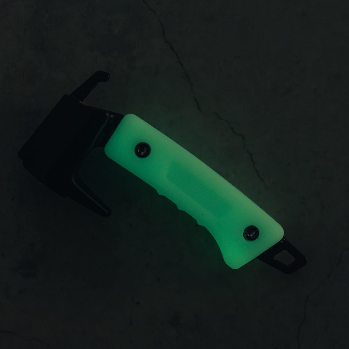 ペグを簡単に抜くことができる、ペグ抜きフックを装備。グリップエンドの穴に好みのパラコードを結べば、ハンガーフックにしたり、使用時の抜け防止のループとして使用できる。