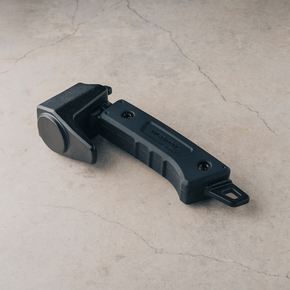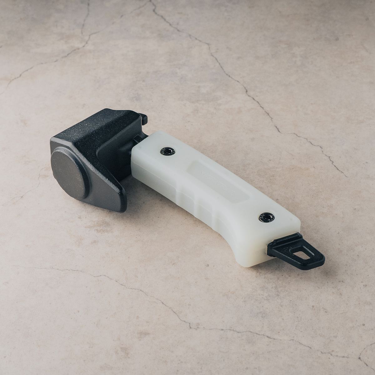 コンパクトハンマーは持ち手とヘッドが近く、打ち損じによる怪我が発生しやすい。手元の安全性を高める目的でシールドデザインを採用し、打ち損じによる怪我のリスクを低減。安全性を高めた力強く打ち付けやすい構造。※快適にペグを打ち込むための理想的な持ち方があります。説明書をご確認ください。【意匠登録出願中】