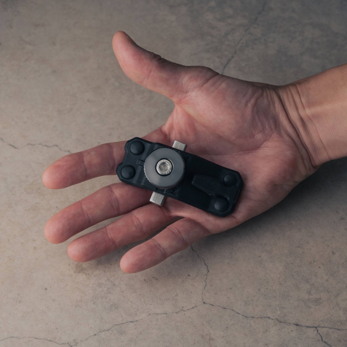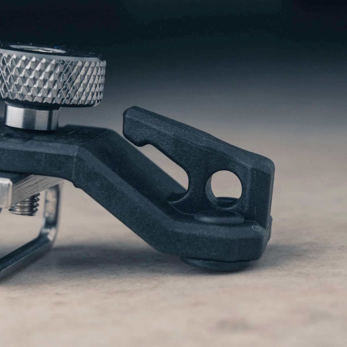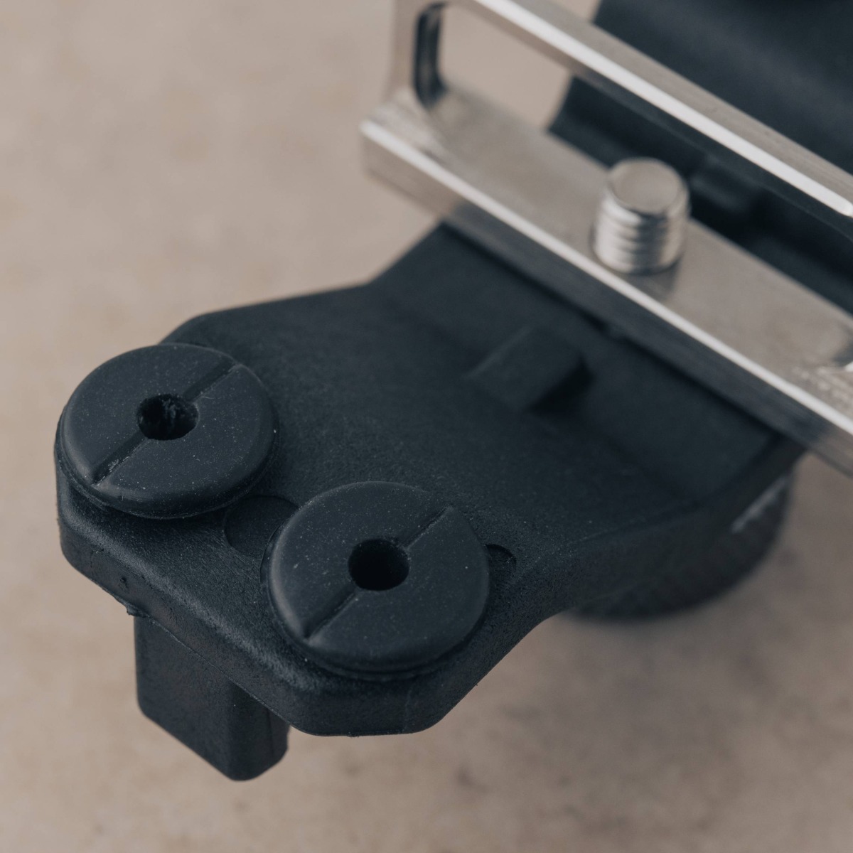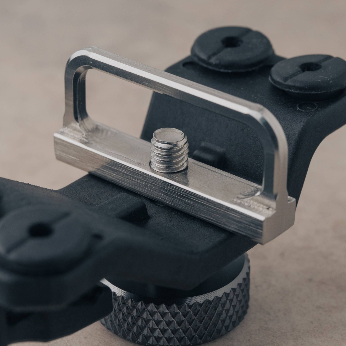 接続アダプターは強度が高く錆びにくいステンレス製。締付けノブはアルミニウム合金を削り出し、軽量かつ強度を確保。アウトドアで使うことを想定し錆に強い材質を選定。
