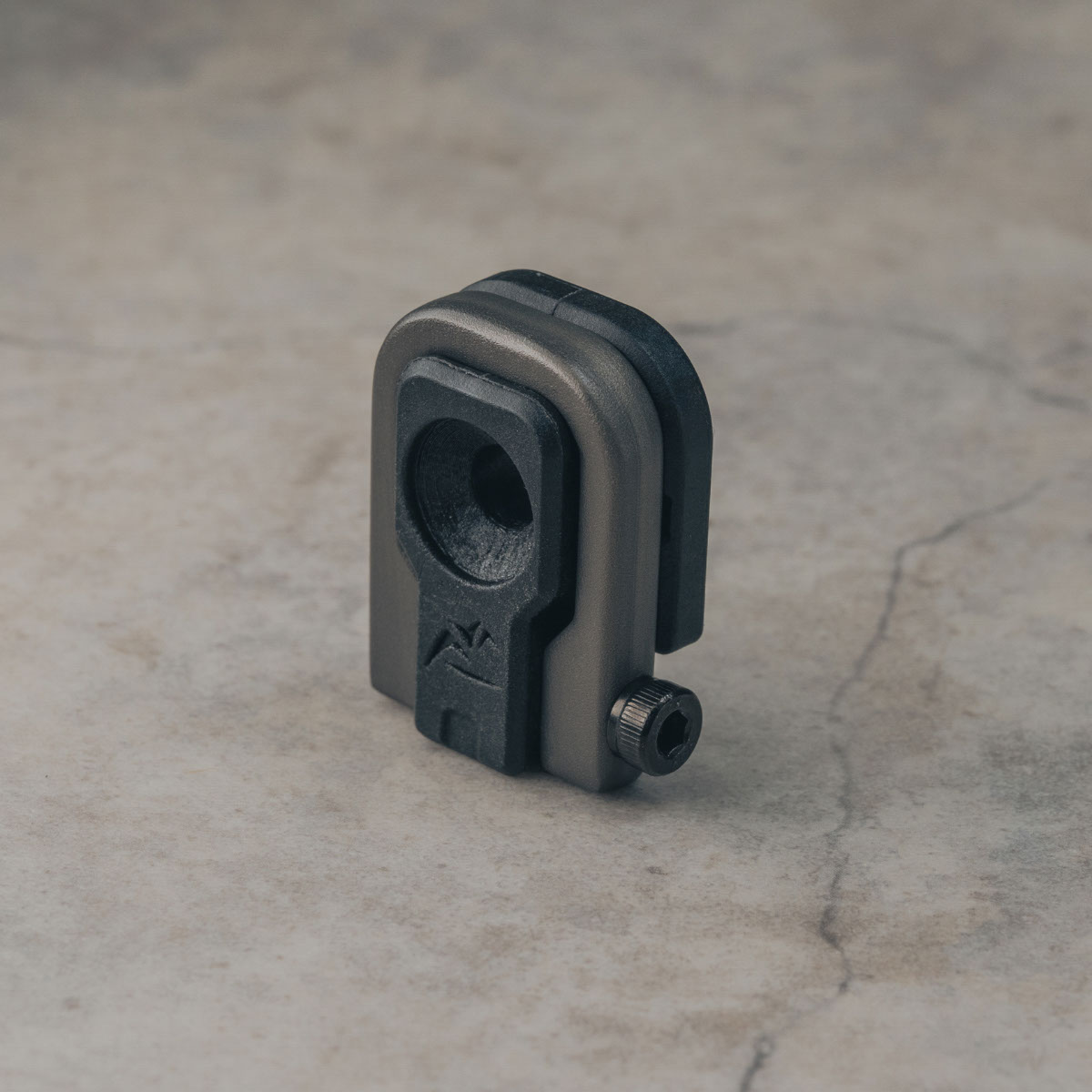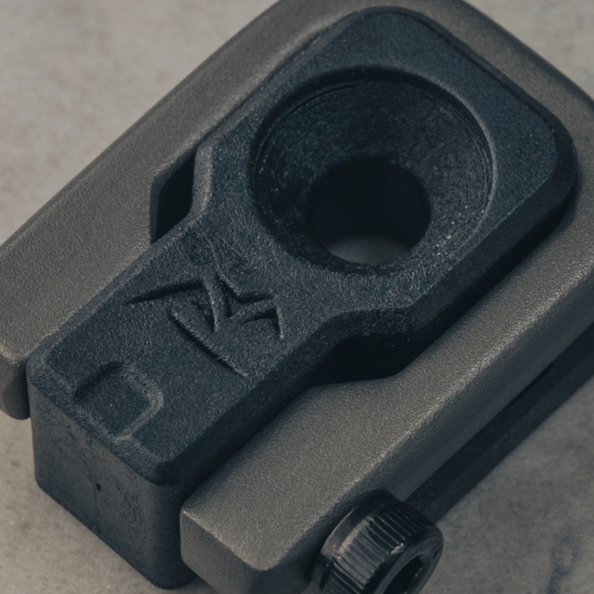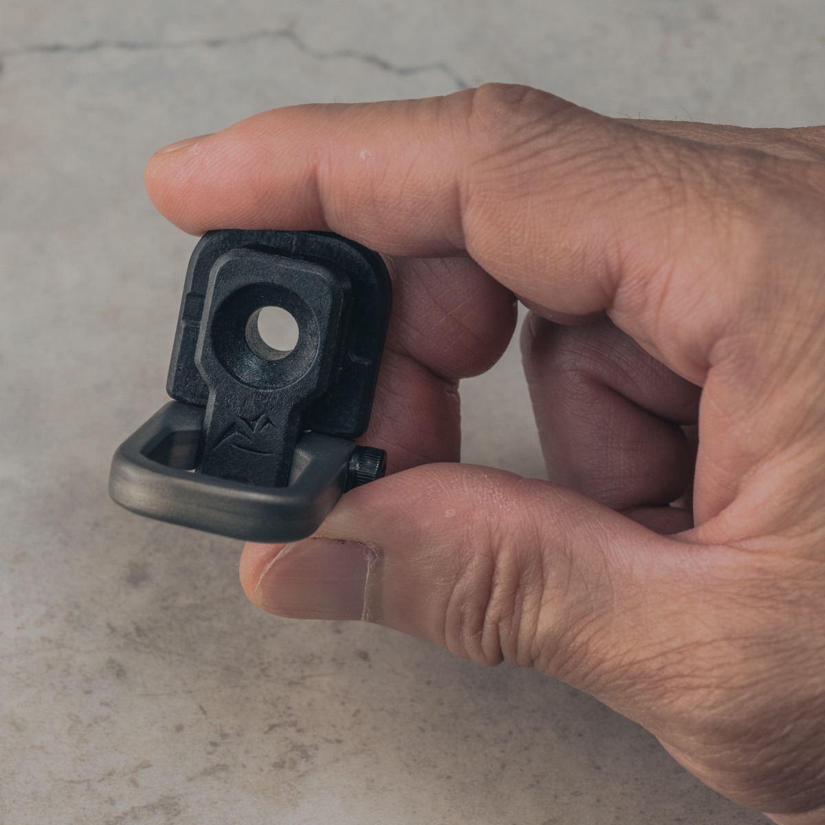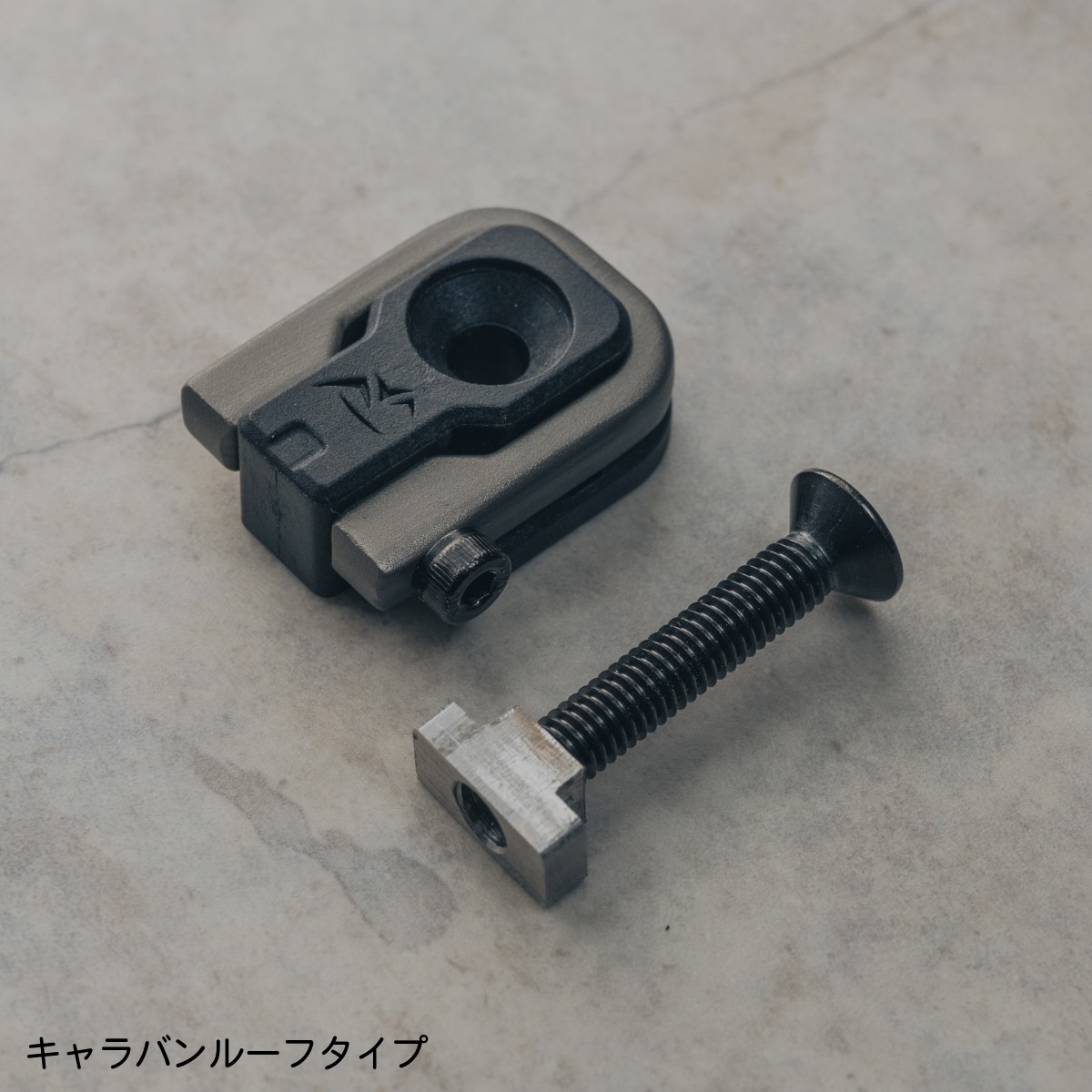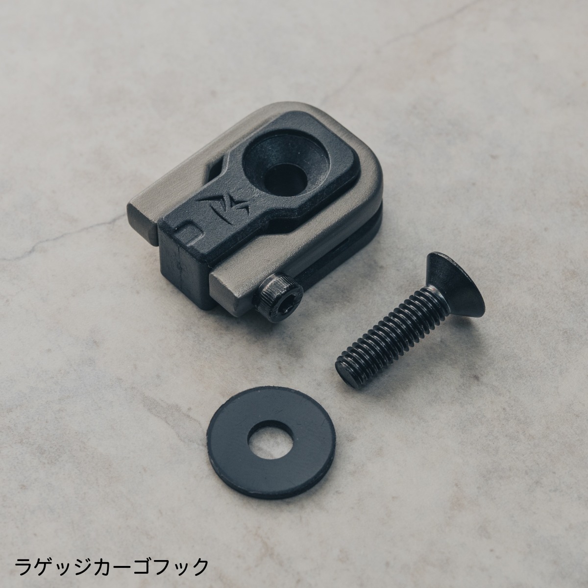 フックは高強度かつ軽量なアルミニウム鍛造製法。耐摩耗性に優れたハードアルマイト処理を施す。さらに、ボルトは錆びに強いステンレス鋼を採用し、表面をブラックに仕上げてデザインの一体感を高める。