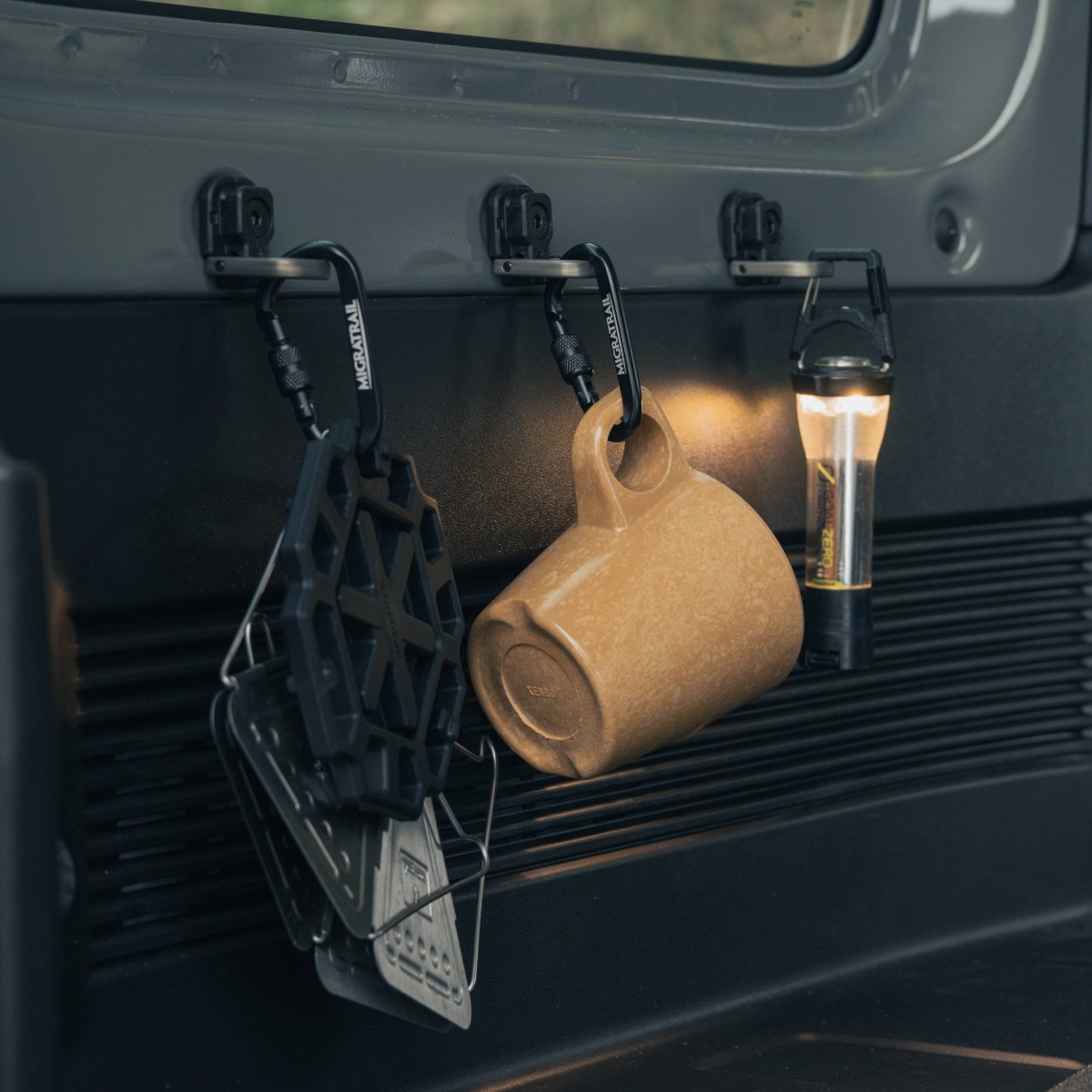 車両のラゲッジスペースに簡単に取付けられる荷掛けフック。装着することにより、荷物を固定するカーゴネットやカーゴロープなどを取付けやすくできる。フックは収納でき、邪魔にならず、走行中の干渉音もない。異素材で構成された部品の各部は軽量かつ強度にこだわったハイスペックな材質を採用。取付け工具が付属され、すぐに装着可能。