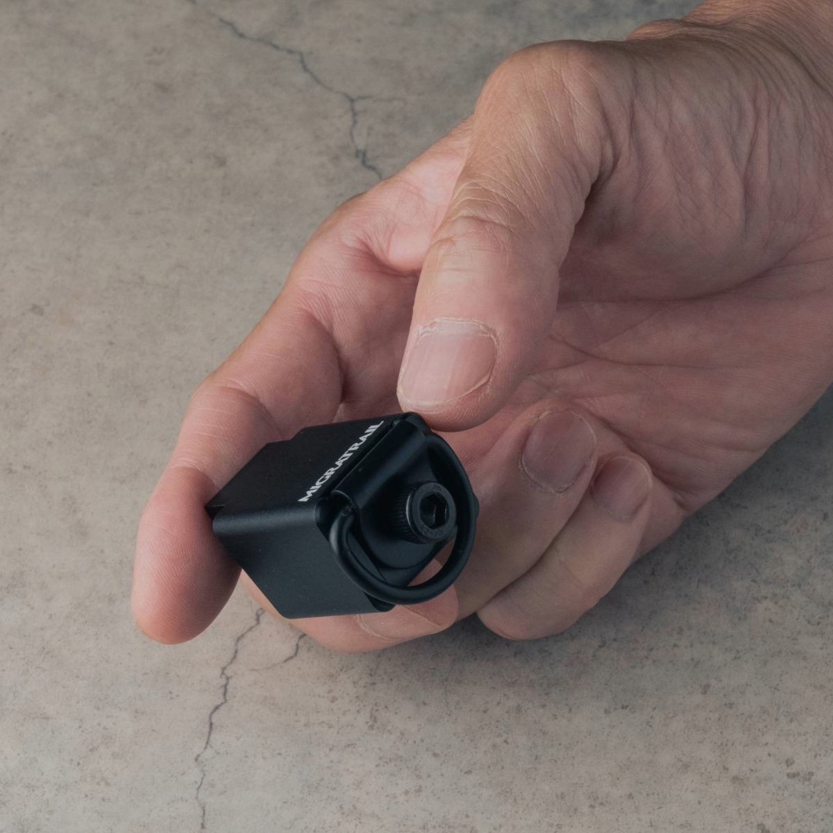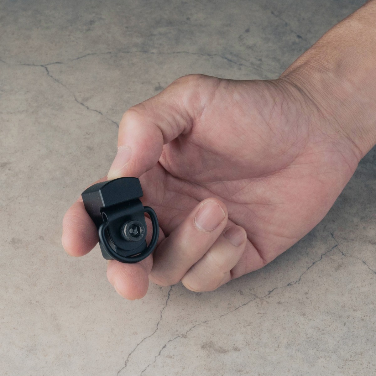 ボディは軽量高剛性なアルミニウム合金を採用し、アルマイト処理後にレーザープリントを施す。ボルトとDカンフックは錆びに強く、耐久性の高いステンレス鋼。全てをブラックで統一し、デザイン性を高めた。