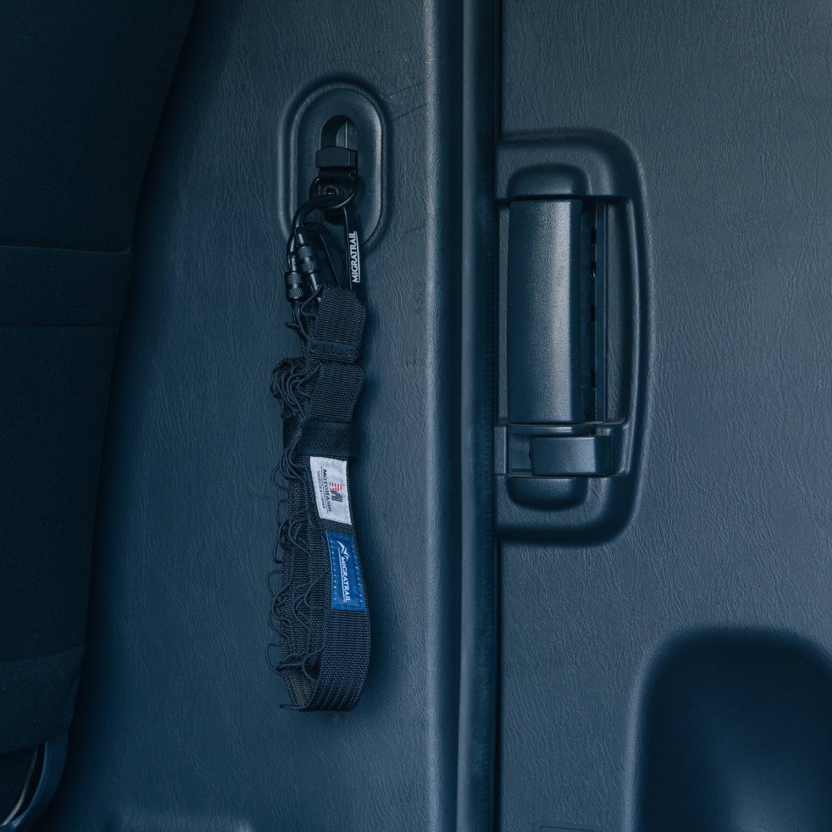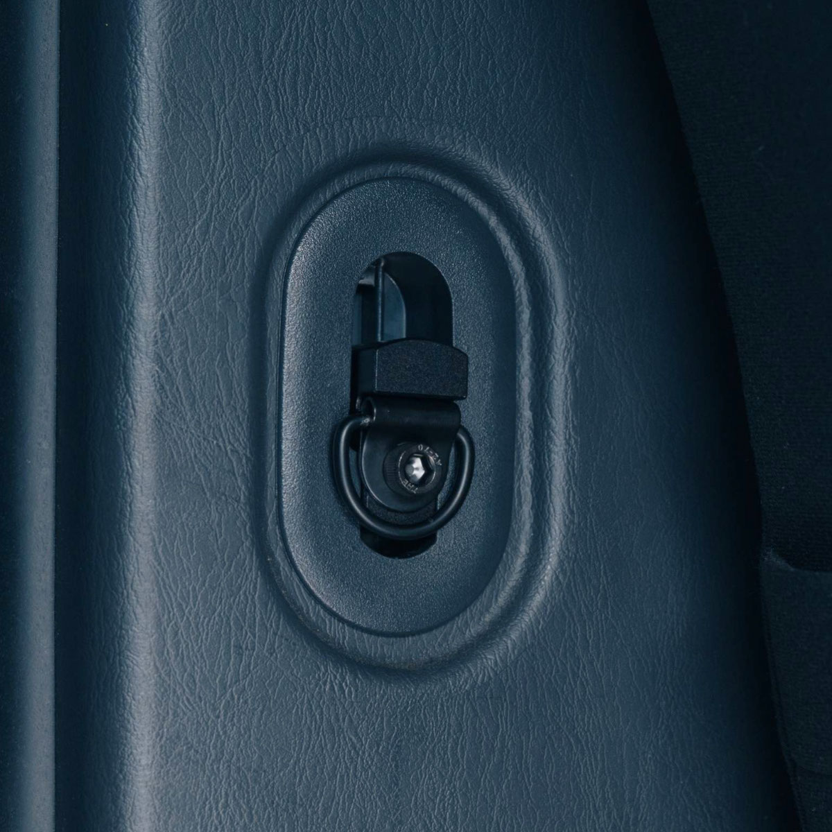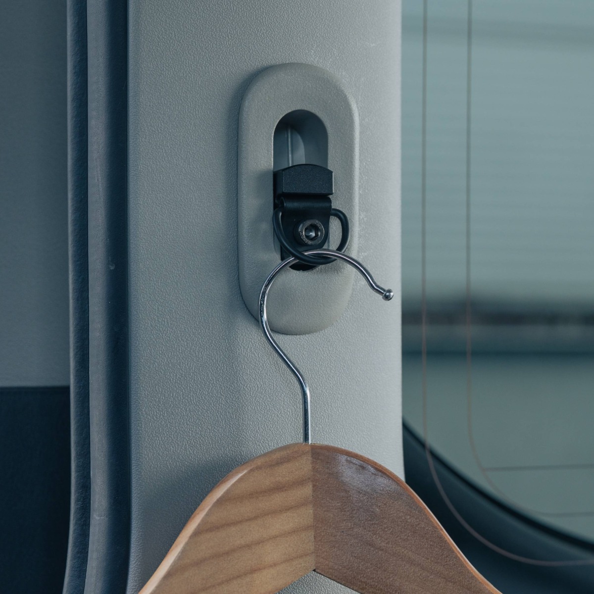 ワンボックスカーの室内の中でも利便性の高い位置にフックを設置でき、LEDランタンやハンガーなどの小物を掛けやすい。MIGRATRAILバンジーコードやタフフックを取付ければ様々な物を吊り下げられる。