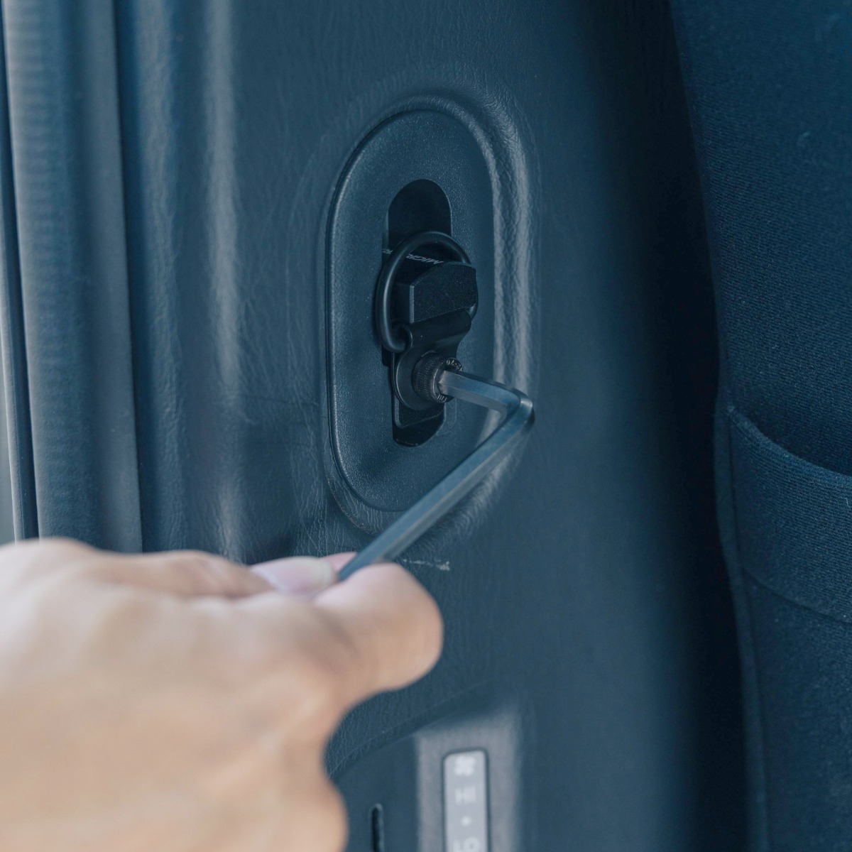 | 素材 | ボディ:アルミニウム合金 Dカン:ステンレス鋼 ボルト:ステンレス鋼 スペーサー:アルミニウム合金※ハイエース専用のみ付属 |