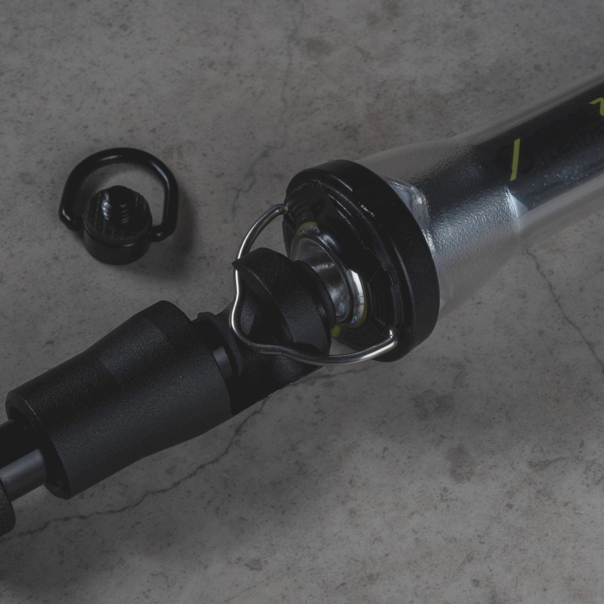 バックドアに重たいキャンプギアやウェットスーツなどを掛けた際、重さに耐え切れずバックドアが降りてくることを防ぐストッパーとして利用可能。ダンパーを傷つけないように、クランプ部にはゴムブッシュを装備。