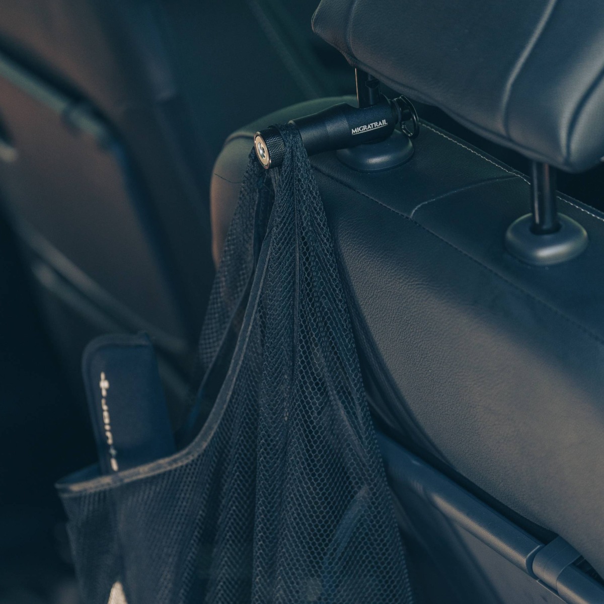 使用しない時には、ヘッドレストのシャフトへ取付け収納可能。