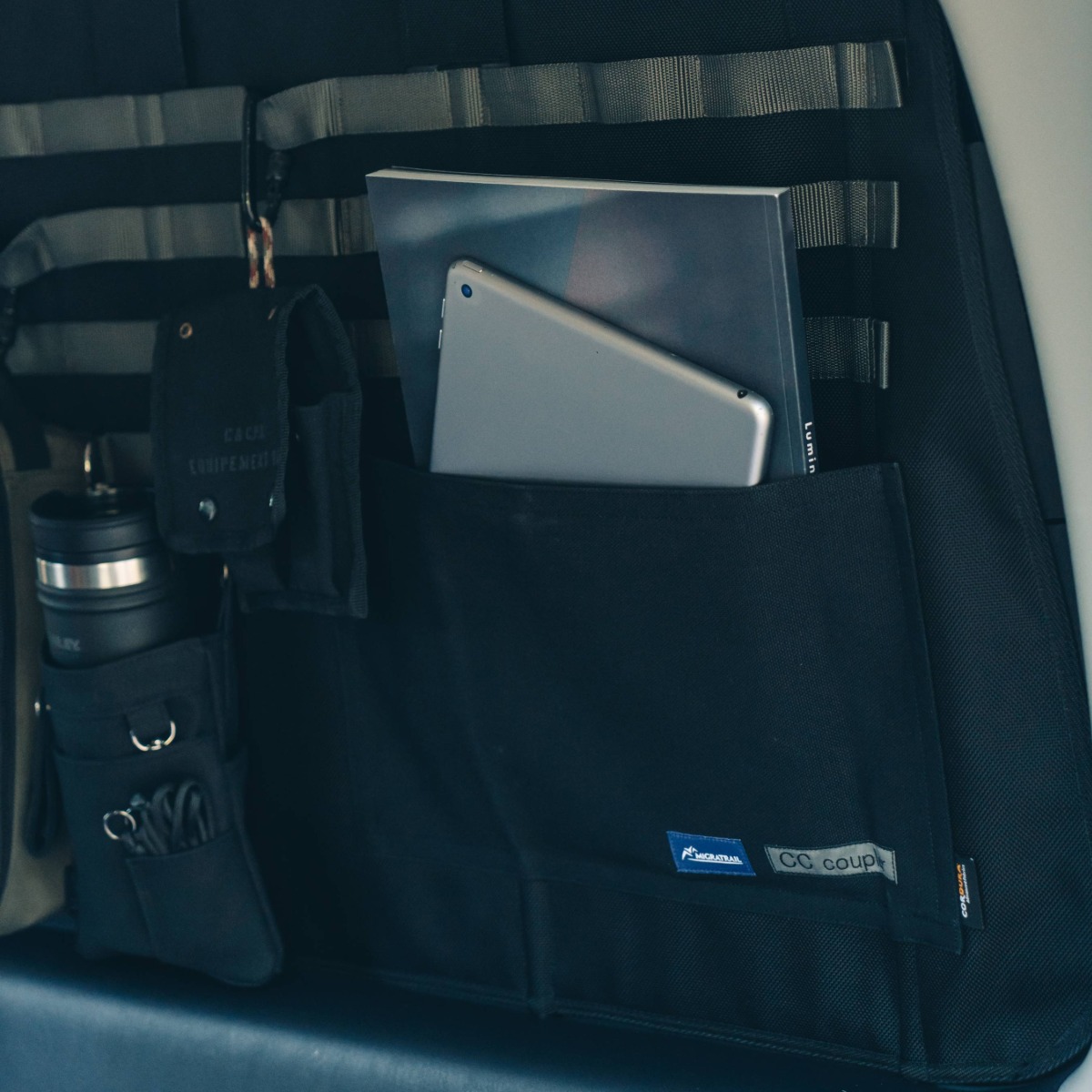 車中泊時に貴重品を入れての外出を想定し、脱着式のオーガナイザーを標準装備。