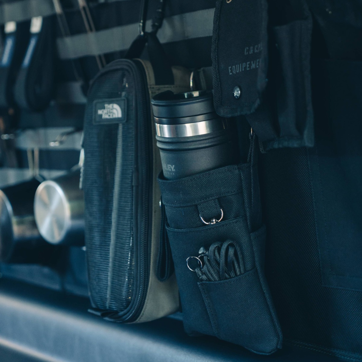 アイテムをモールシステムに掛けたまま助手席側のベッドの収納が出来ない場合がございます。吊り下げる道具の大きさにご注意ください。